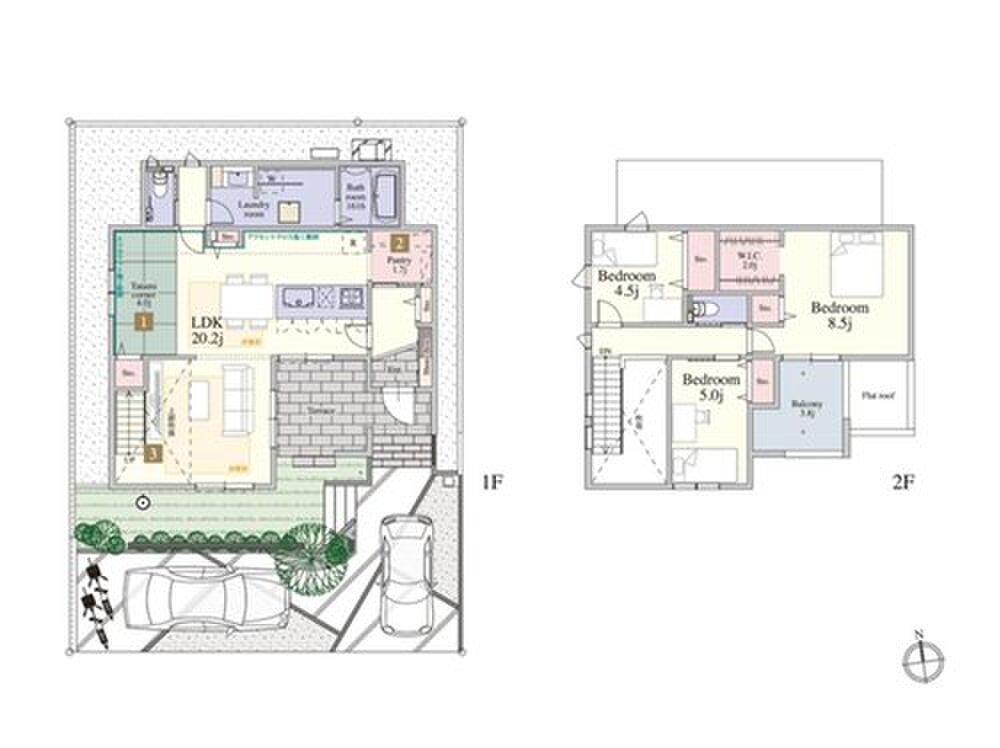 | 建物面積 | 99.25m2~109.63m2(30.02坪~33.16坪) | 土地面積 | 142.59m2~166.45m2(43.13坪~50.35坪) |