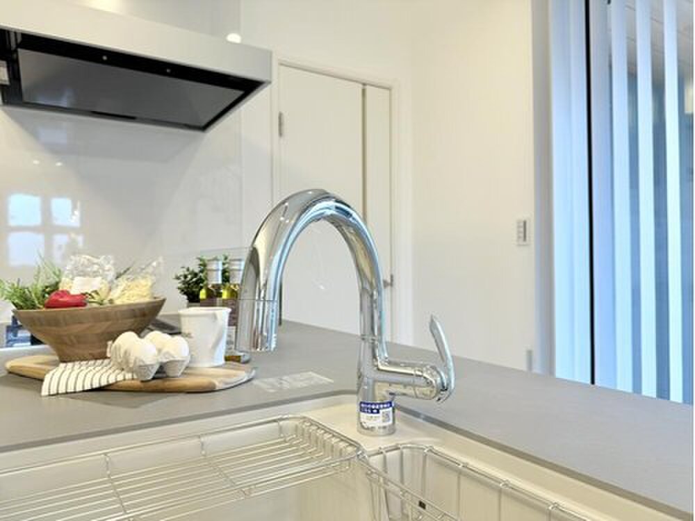 キッチンには「タッチレス水栓」を導入しており、家事の手助けとな...