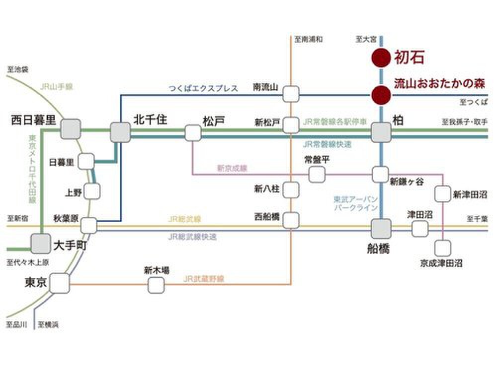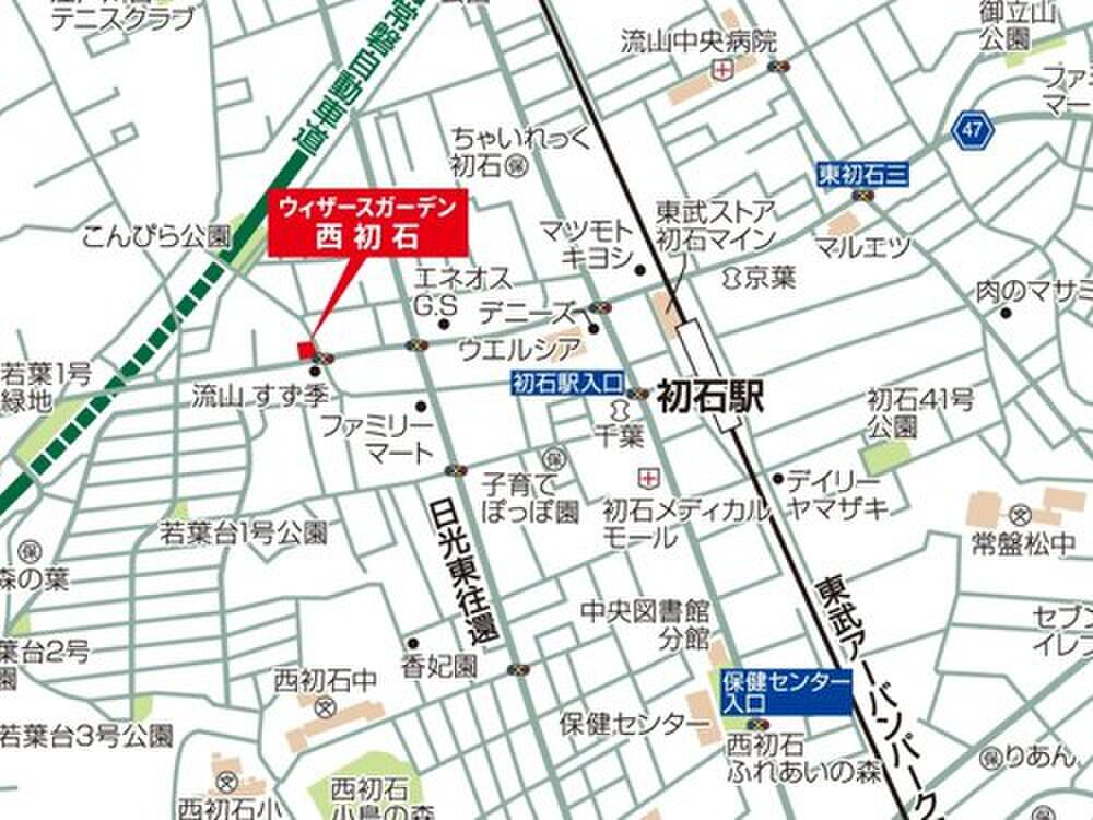 東武野田線「初石」駅 徒歩7分~8分 つくばエクスプレス「流山おおたかの森」駅 徒歩26分~27分 JR武蔵野線「南流山」駅 車で約6.7m |