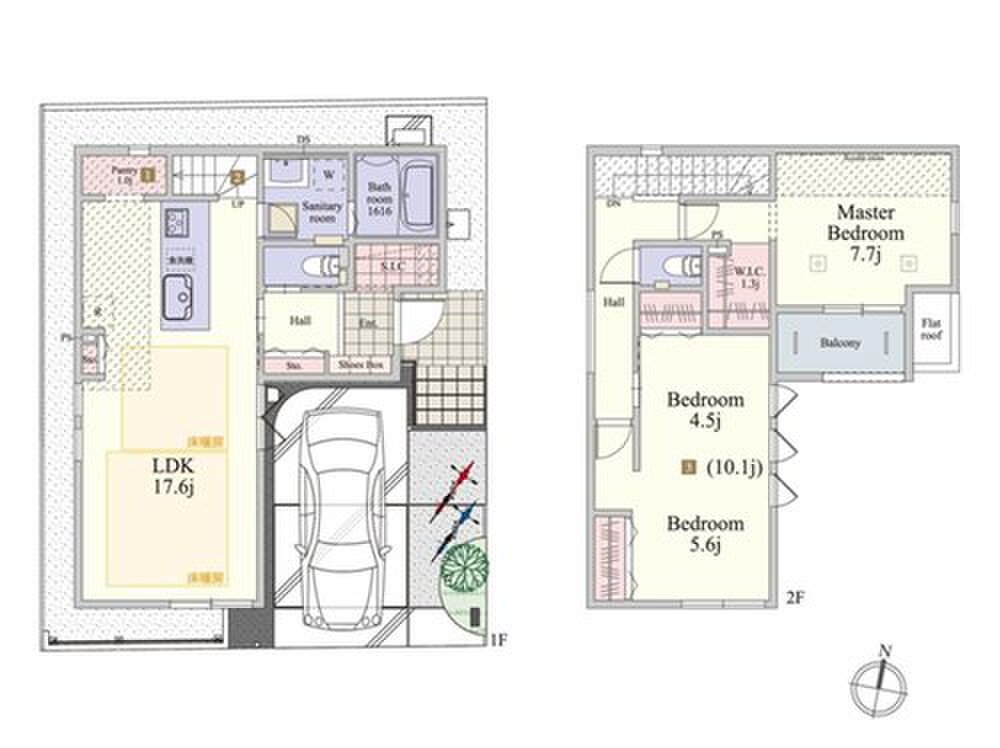 | 建物面積 | 92.14m2・96.82m2 | 土地面積 | 100.21m2・102.29m2 |