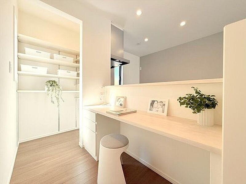 キッチン前のデスクカウンターはお子さまの勉強も見守るのにピッタ...