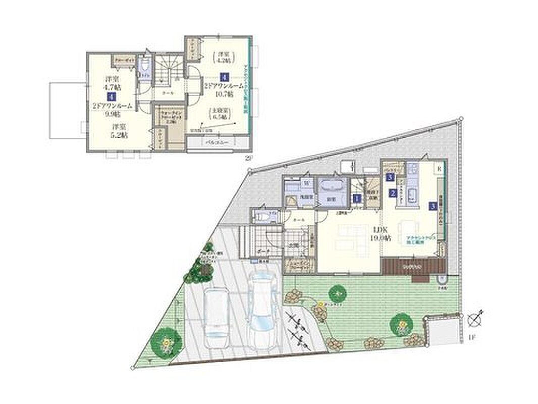 - ※完成予想図やCG合成画像は、門塀・植栽・庭・外観等、実際とは多少異なる場合があります。