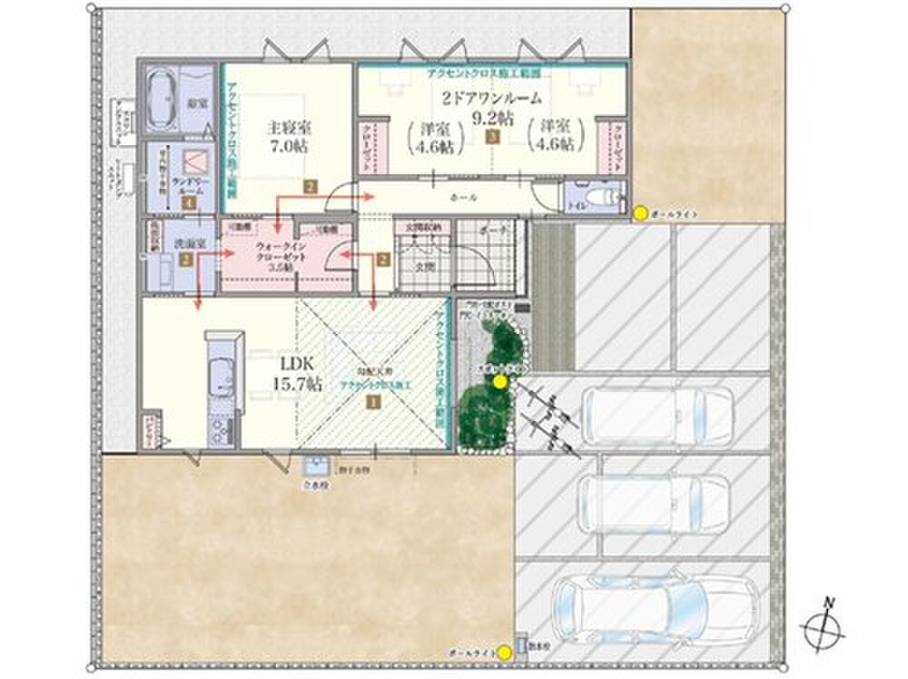 ・敷地面積240m2超!駐車スペース3台と広いガーデンコーナーが魅力