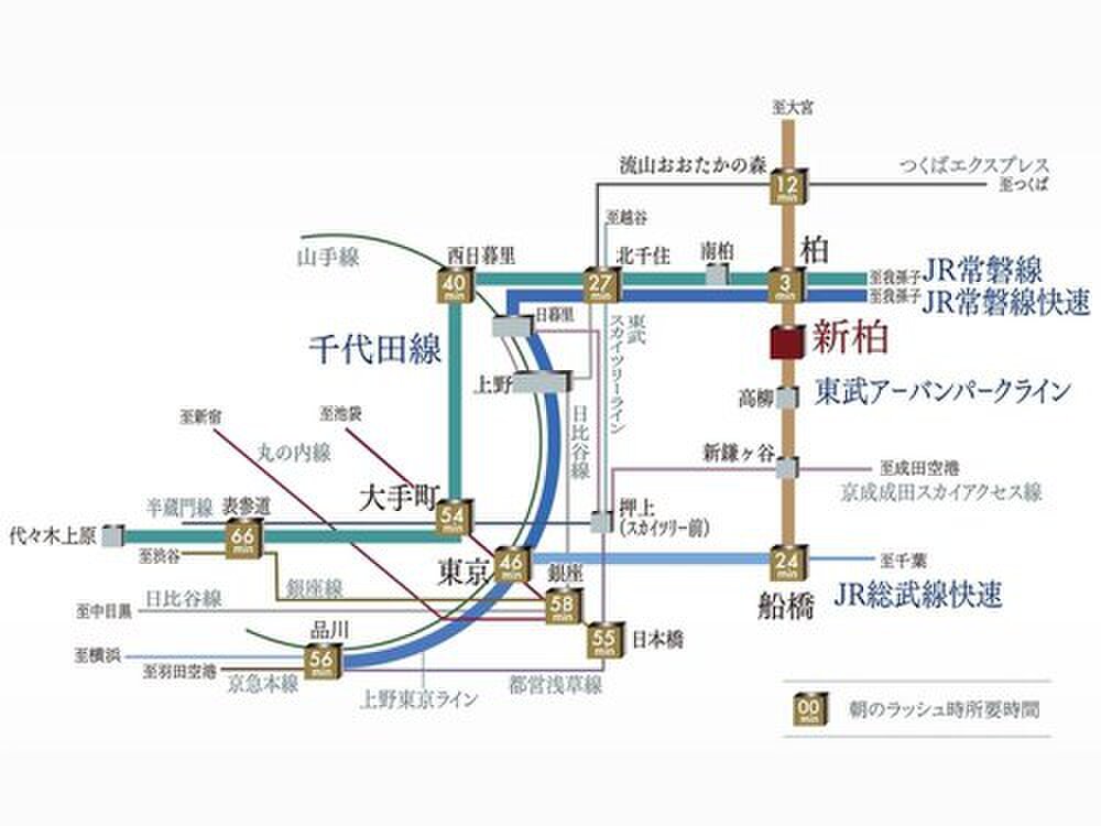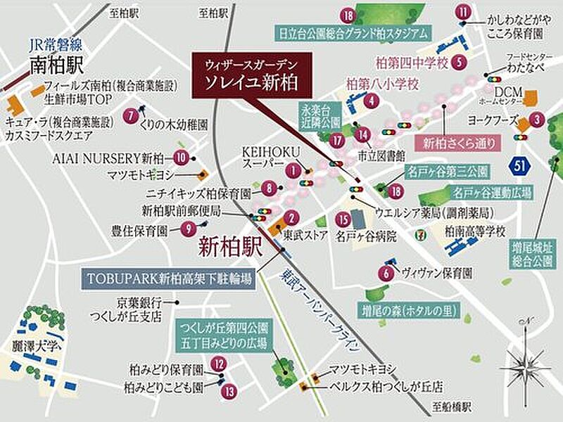 東武野田線「新柏」駅 徒歩8分~9分 JR常磐線「南柏」駅 徒歩28分~30分 JR常磐線「柏」駅 徒歩43分~46分 |
