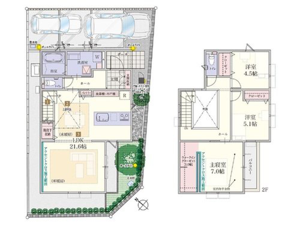 - ※完成予想図やCG合成画像は、門塀・植栽・庭・外観等、実際とは多少異なる場合があります。