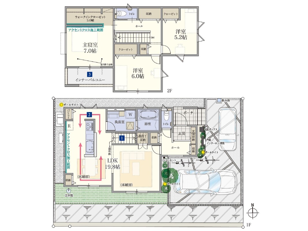 - ※完成予想図やCG合成画像は、門塀・植栽・庭・外観等、実際とは多少異なる場合があります。