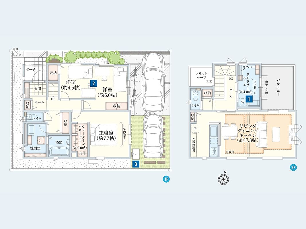 - ※完成予想図やCG合成画像は、門塀・植栽・庭・外観等、実際とは多少異なる場合があります。