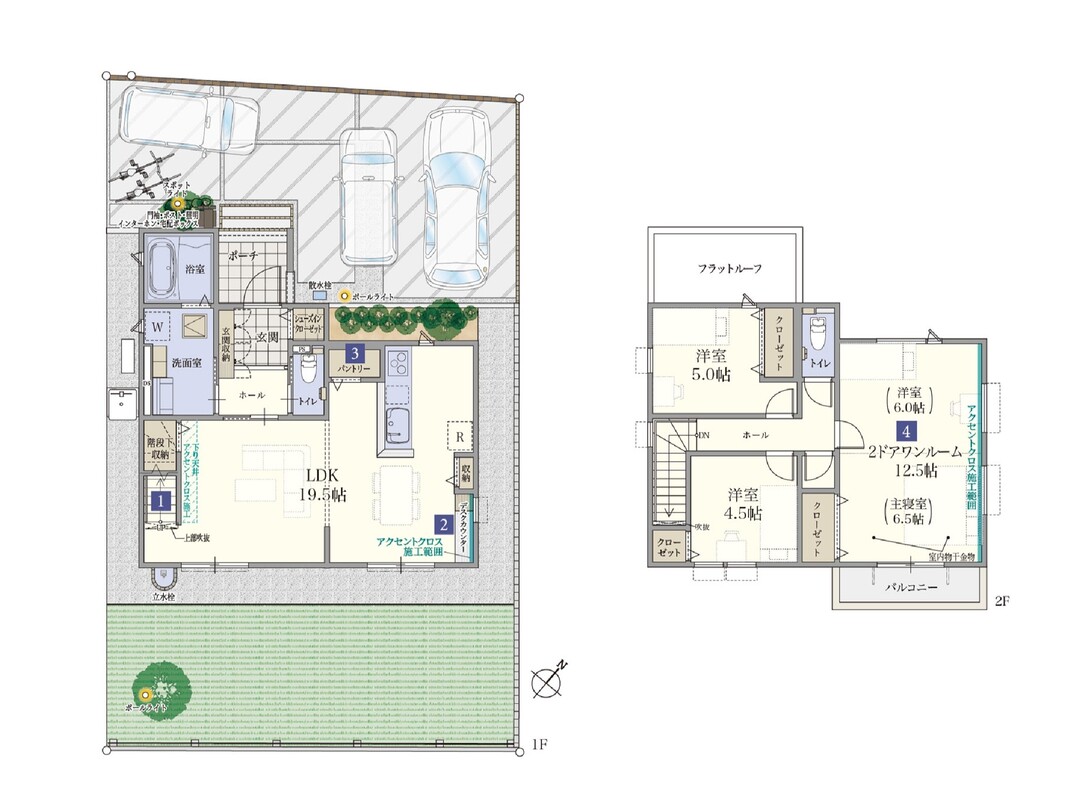 - ※完成予想図やCG合成画像は、門塀・植栽・庭・外観等、実際とは多少異なる場合があります。