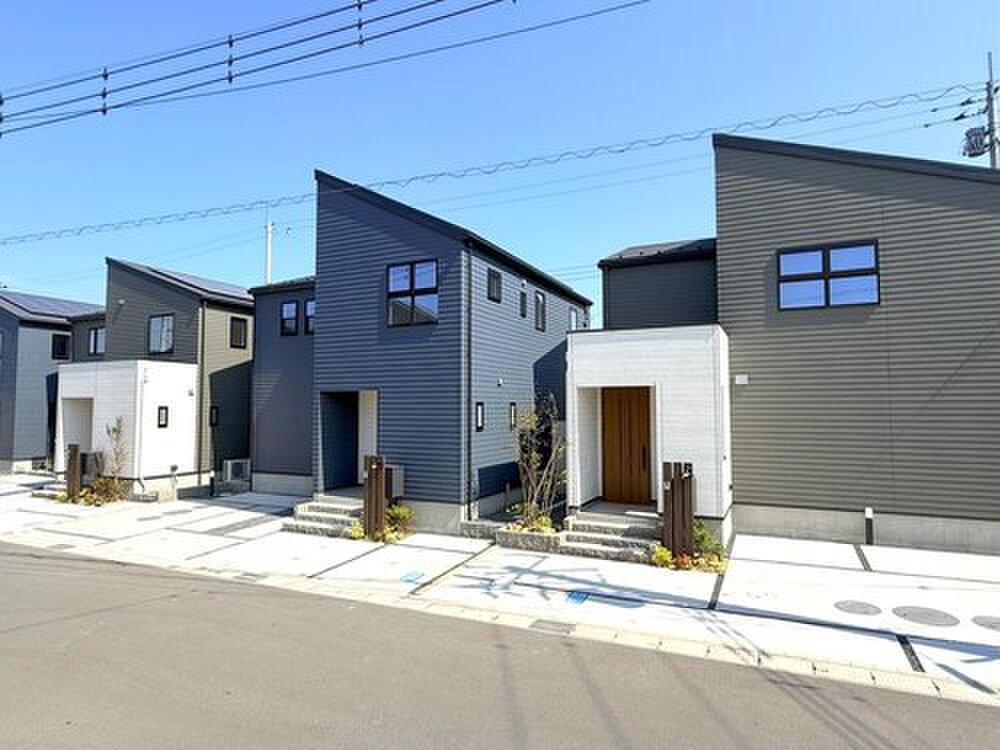 ●ウィザースガーデン金田瓜倉の街並みが完成いたしました!陽当たりの良いシンプルモダンな外観の分譲地です。
