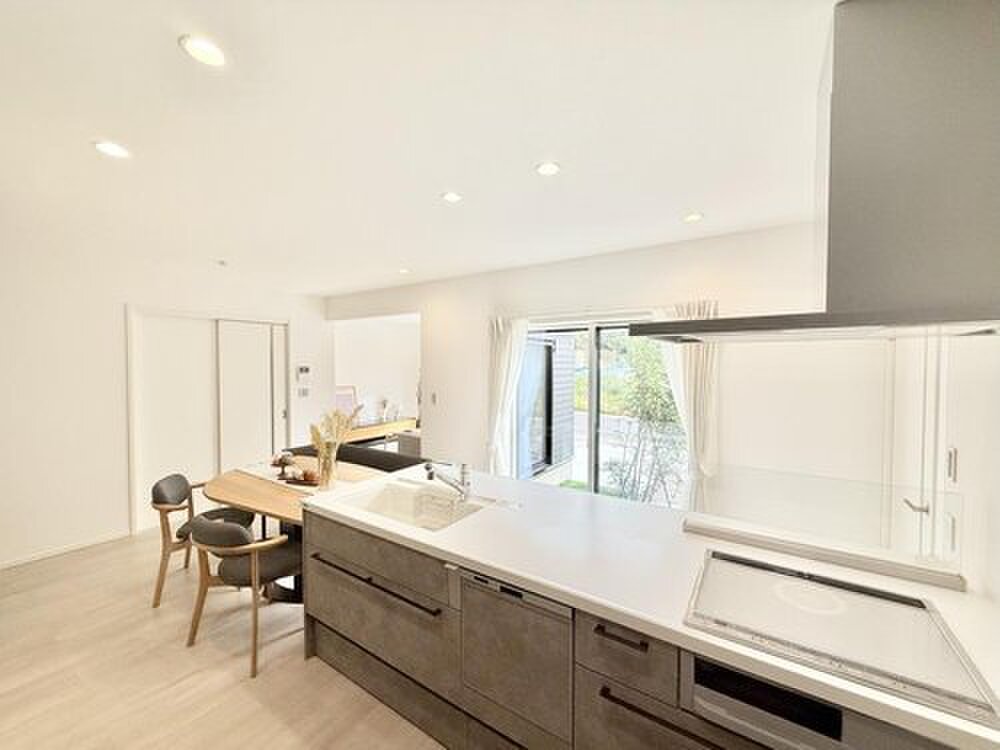 ●キッチンにも大きなサッシを設けることで、ダイニングキッチンからも中庭を感じられます!