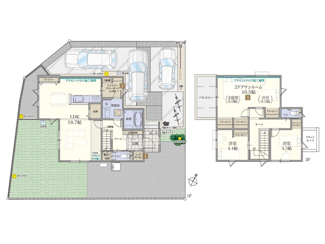 ●最大3台分の駐車スペースを確保しました。セカンドカーや来客用の駐車スペースがあるのは嬉しいポイントですね!