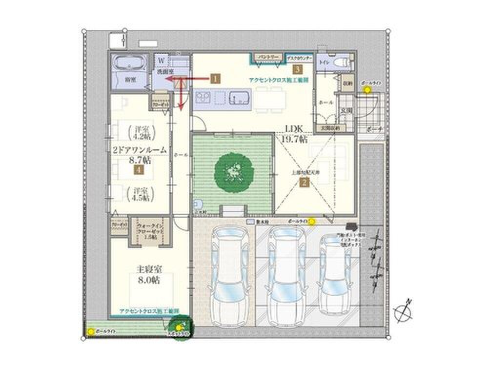 ●「ファミリークローゼット」「パントリー」「中庭」など個性的なプランを採用