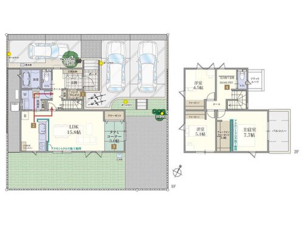 | 間取り | 2LDK+S(納戸)~4LDK | 建物構造 | 木造2階建(2×4工法)、木造1階建(2×4工法) |