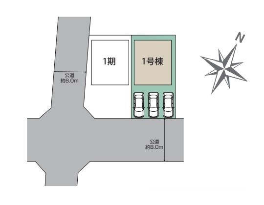 | 駐車場 | 3台 | 道路の幅員 | :南東8m |