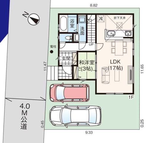 | 駐車場 | 1台 | 道路の幅員 | :北西4m |