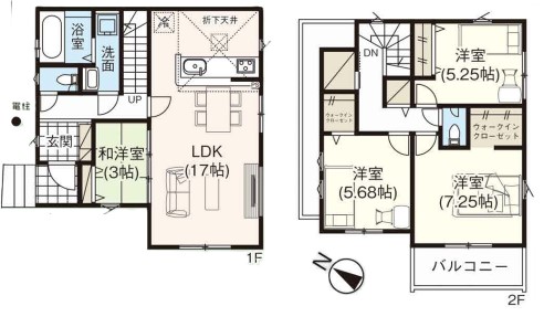 ◆駐車並列2台可能!ウォークインクローゼット配置で収納充実♪