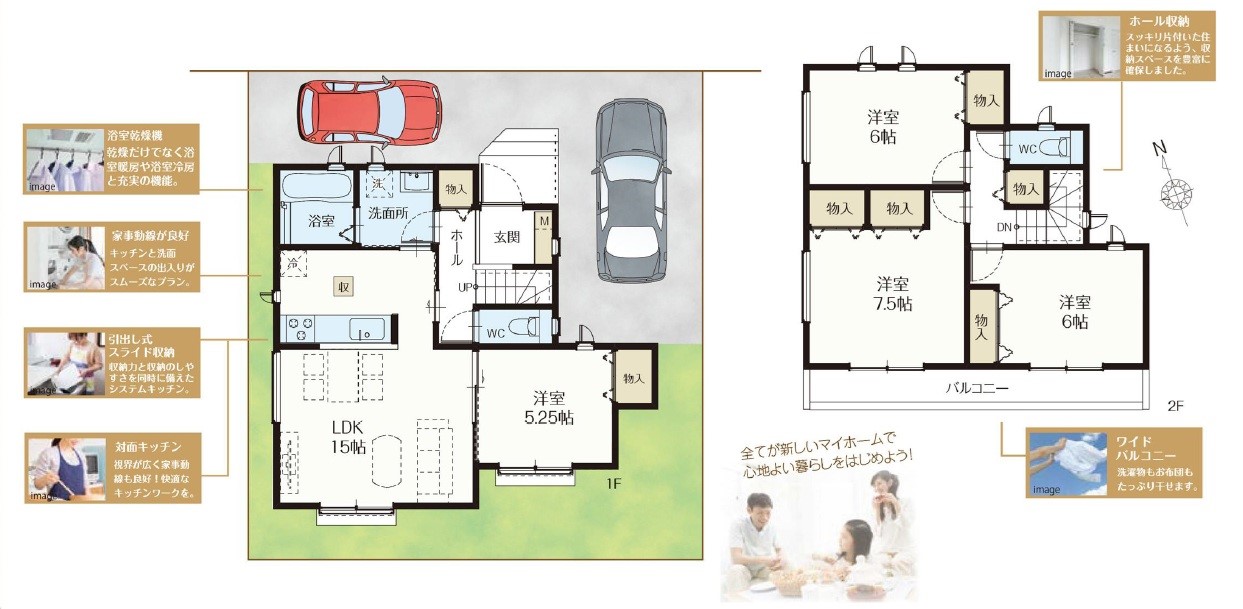 - ※完成予想図やCG合成画像は、門塀・植栽・庭・外観等、実際とは多少異なる場合があります。
