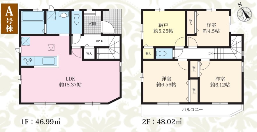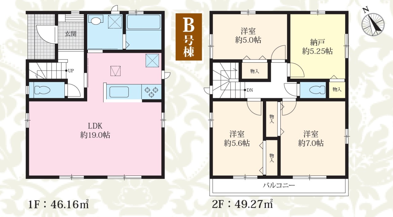 | 建物面積 | 95.01m2~95.43m2 | 土地面積 | 111.45m2~114.8m2<私道負担面積26.9m2> |