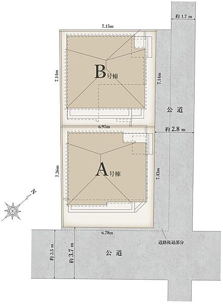 | 建物面積 | 79.25m2(A号棟)88.27m2(B号棟) | 土地面積 | 50.47m2(B号棟)50.89m2(A号棟) |