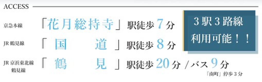 - 京急本線「花月総持寺」駅 徒歩7分JR鶴見線「国道」駅 徒歩8分JR京浜東北・根岸線「鶴見」駅 徒歩20分