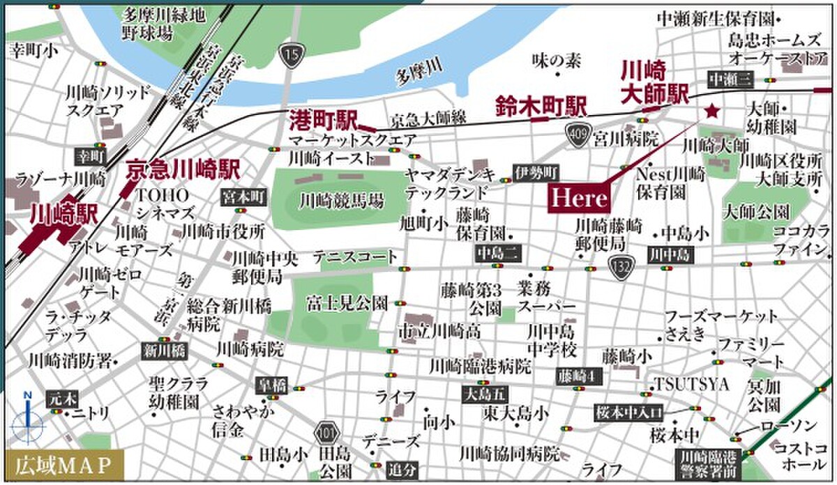 - 京急大師線「川崎大師」駅 徒歩5分京急大師線「東門前」駅 徒歩9分京急大師線「鈴木町」駅 徒歩13分