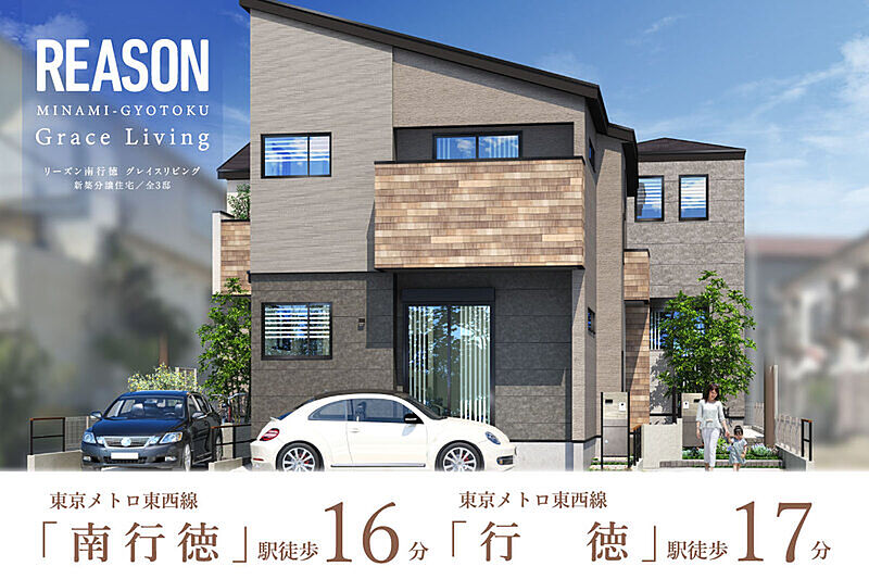 - 「南行徳」駅徒歩16分、「行徳」駅駅徒歩17分の全3邸