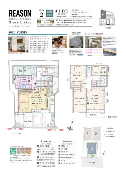 | 建物面積 | 90.57m2~95.83m2 | 土地面積 | 91.76m2~106.17m2 / 私道負担なし |