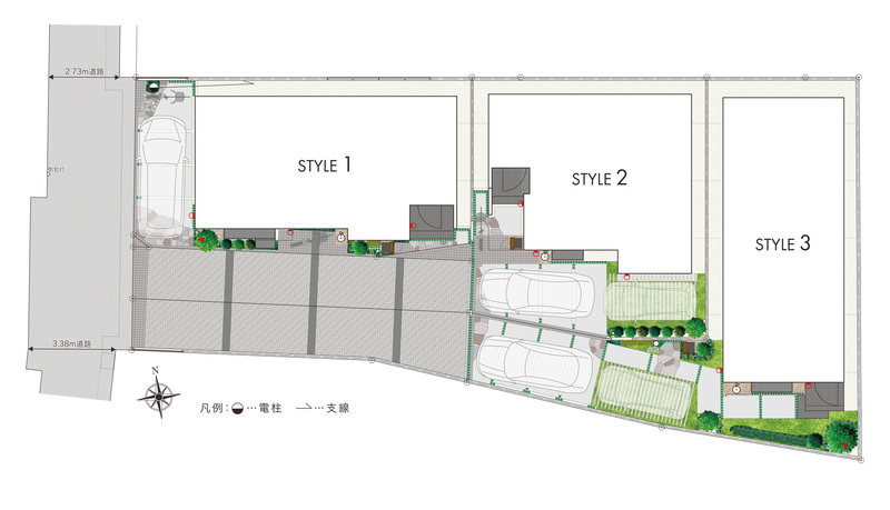 | 建物面積 | 90.21m2~98.12m2 | 土地面積 | 89.43m2~141.18m2 / 私道負担なし |