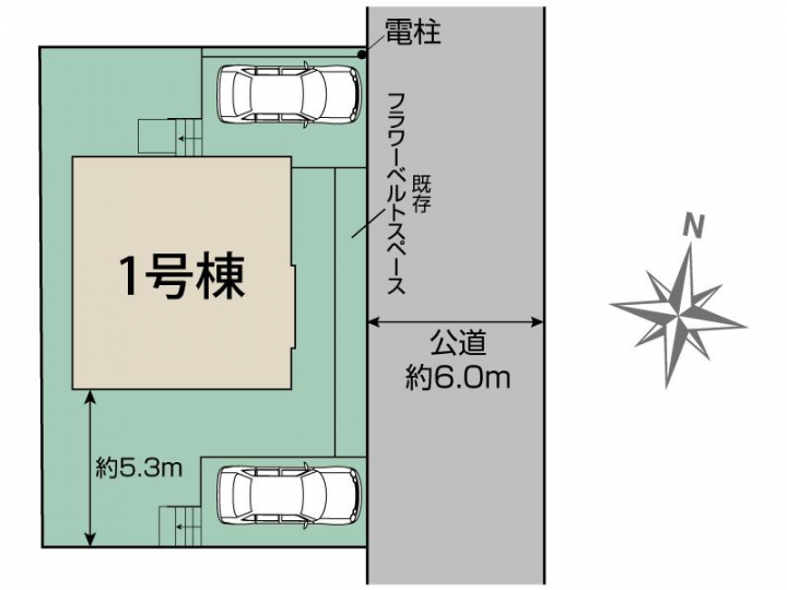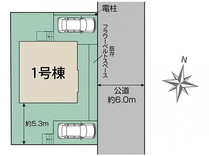 | 駐車場 | 2台 | 道路の幅員 | 東6.0m公道 |