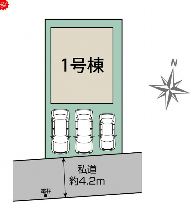 | 駐車場 | 3台 | 道路の幅員 | 南4.2m私道 |