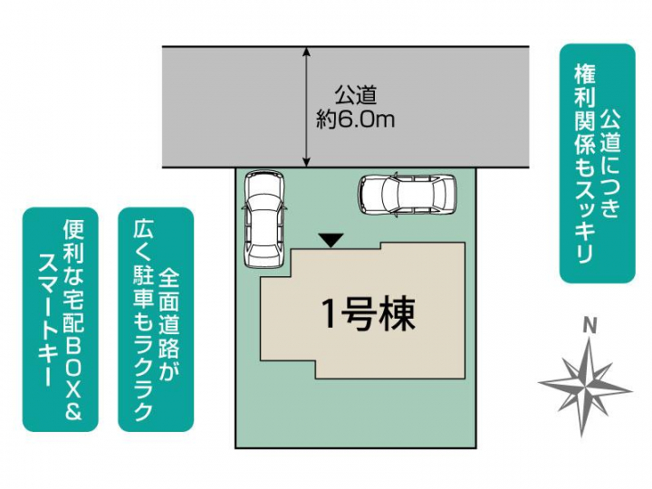 | 駐車場 | 2台 | 道路の幅員 | 北側6.0m公道 |