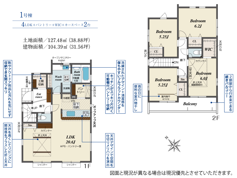 | 建物面積 | 104.39m2(約31.57坪) | 土地面積 | 127.48m2(約38.56坪) |