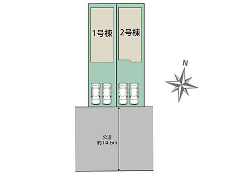 | 駐車場 | 2台 | 道路の幅員 | 南14.5m公道 |