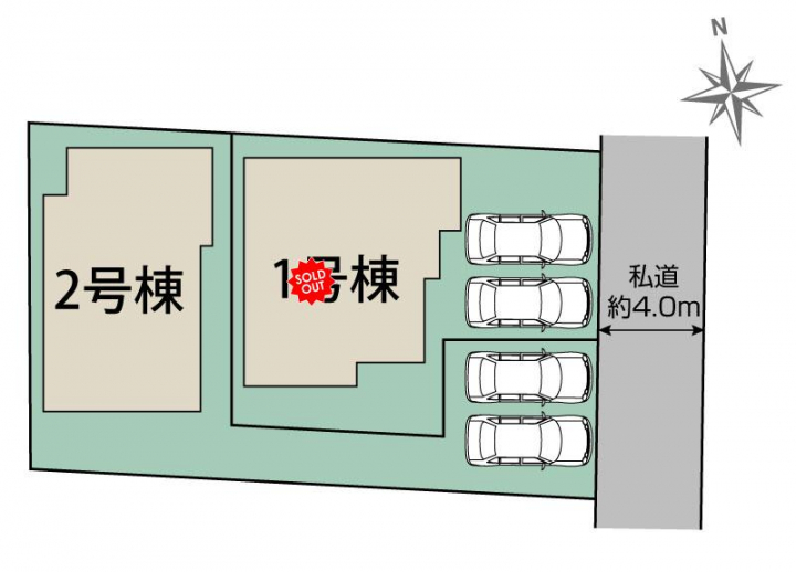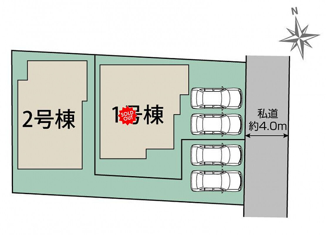 | 駐車場 | 2台 | 道路の幅員 | 東4.0m私道 |