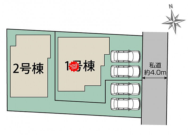 【接道】東4.0m私道 【設備】公営水道、本下水、オール電化、東北電力 ※敷地面積に路地状敷地部分を含みます(2号棟:52.441m2)。 |