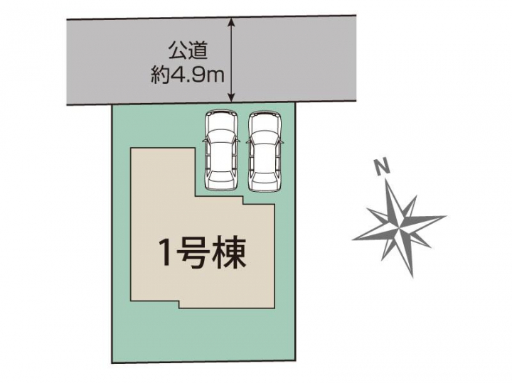 | 駐車場 | 2台 | 道路の幅員 | 北約4.9m公道 |