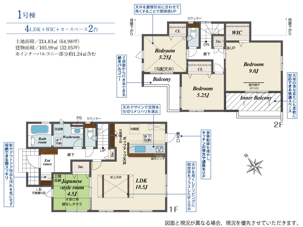 | 建物面積 | 105.99m2(約32.06坪) | 土地面積 | 214.83m2(約64.98坪) |