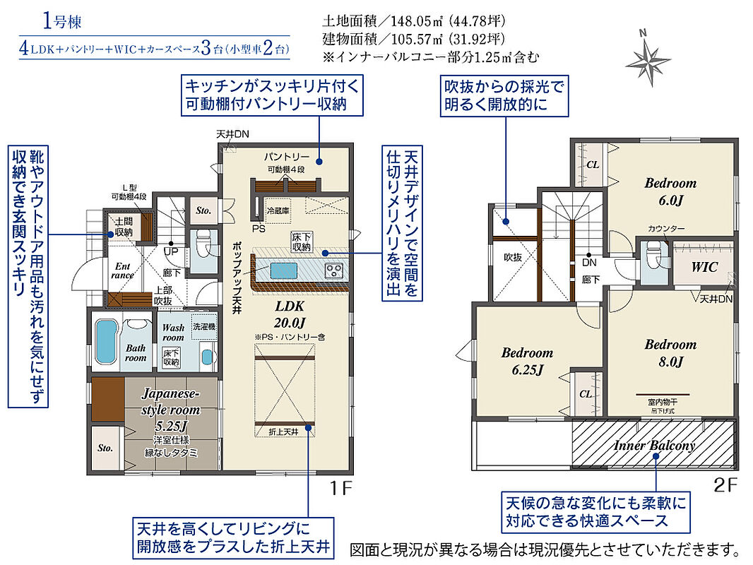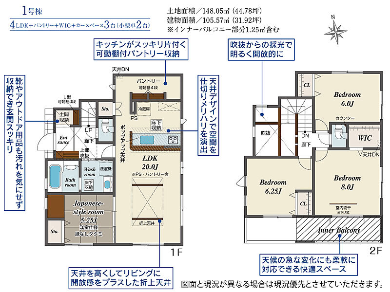 | 建物面積 | 105.57m2(約31.93坪) | 土地面積 | 148.05m2(約44.78坪) |