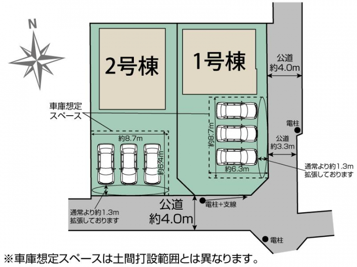 | 駐車場 | 3台 | 道路の幅員 | 南4.0m公道、東3.3m~4.0m公道 |
