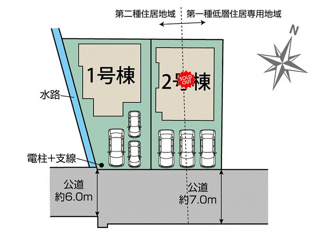 | 用途地域 | 第一種低層住居専用地域・第二種住居地域 | 都市計画 | 市街化区域 |