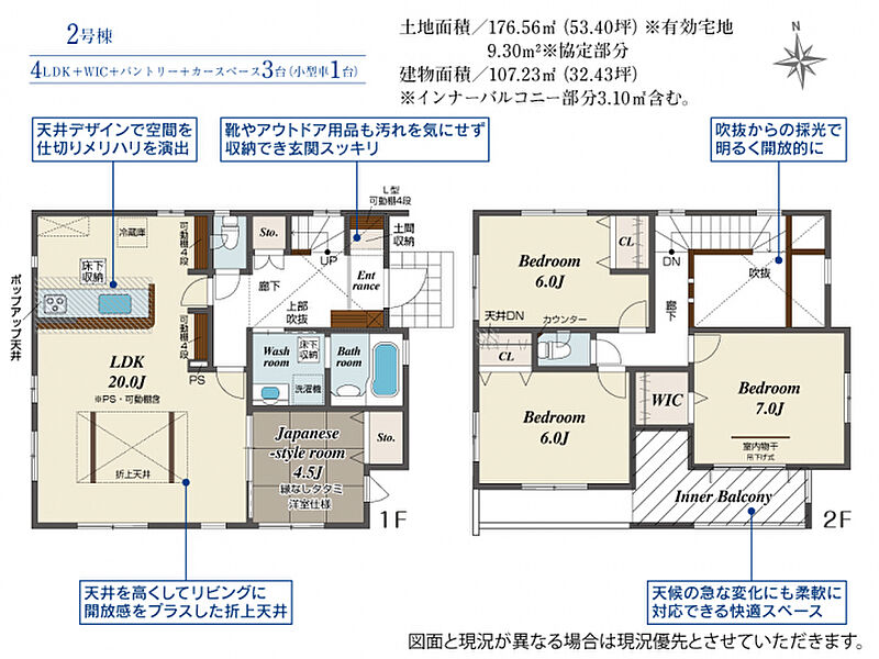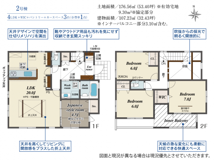 | 建物面積 | 107.23m2(約32.43坪) | 土地面積 | 176.56m2(約53.40坪) |