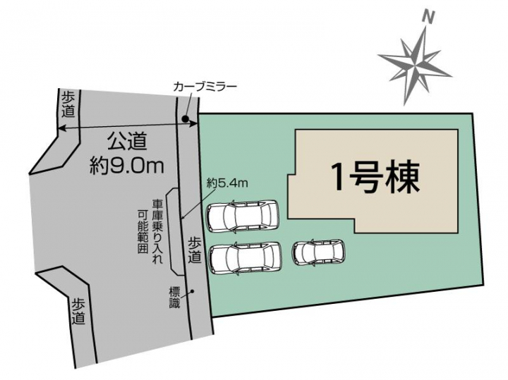 | 駐車場 | 3台 | 道路の幅員 | 西側:約9.0m公道 |
