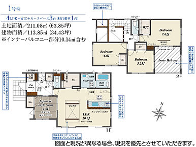| 建物面積 | 113.85m2(約34.43坪) | 土地面積 | 211.08m2(約63.85坪) |