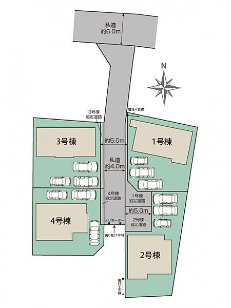 | 駐車場 | 3台 | 道路の幅員 | 北側約4.0m私道、北側約6.0m私道 |