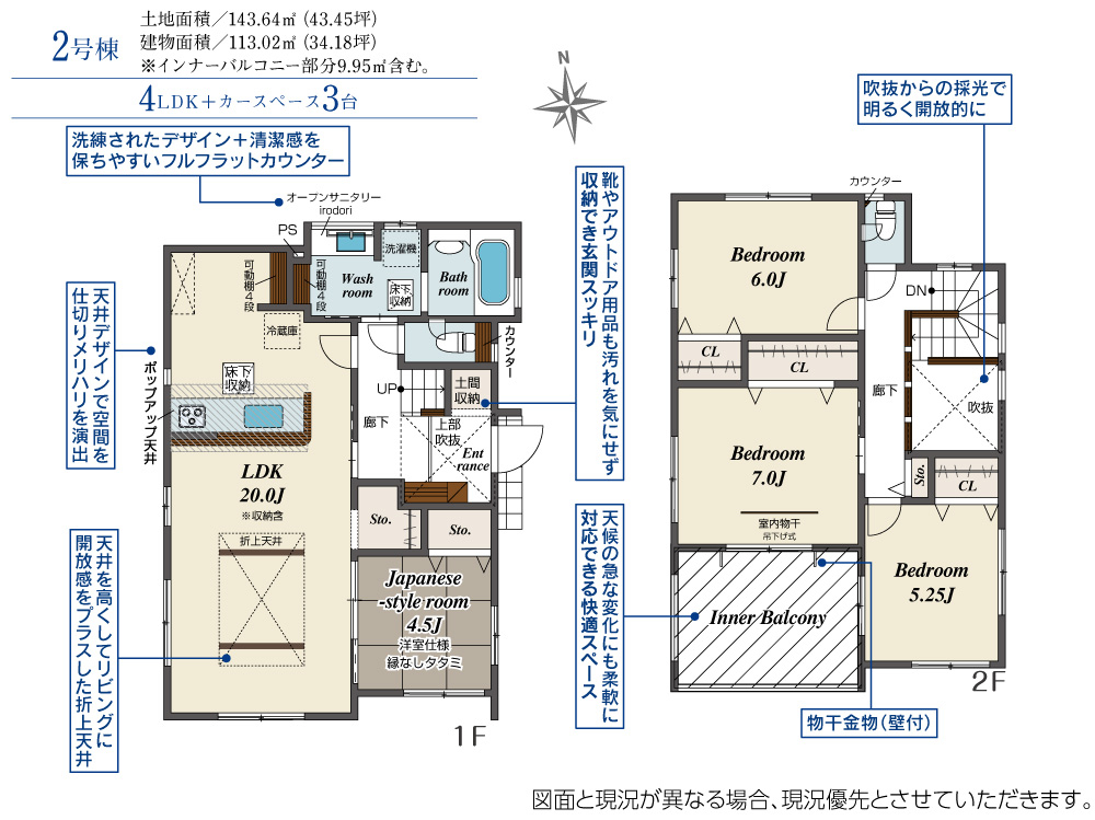 | 建物面積 | 113.02m2(約34.18坪) | 土地面積 | 143.64m2(約43.45坪) |