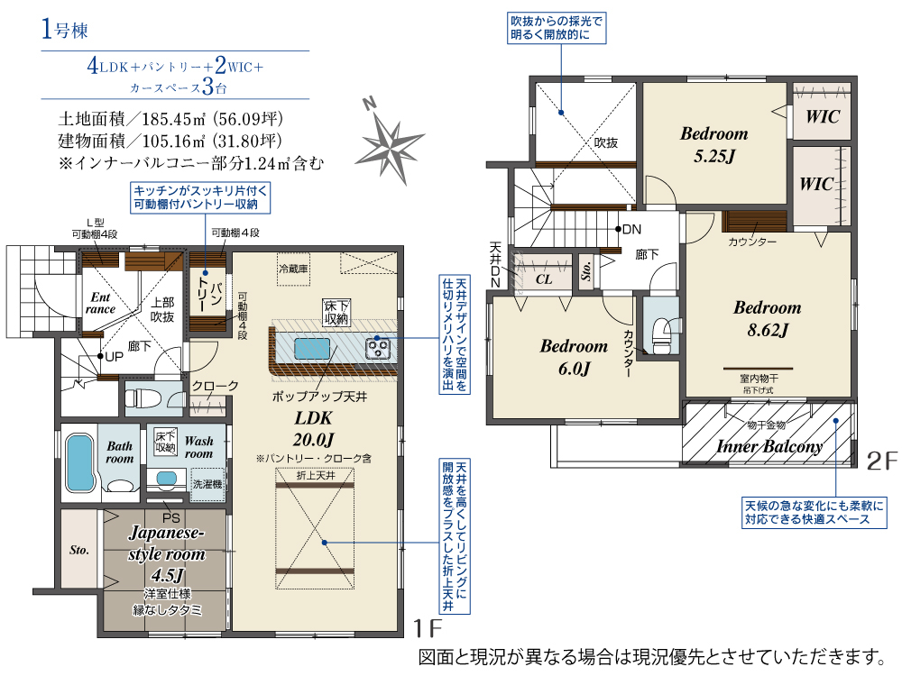 | 建物面積 | 105.16m2(約31.81坪) | 土地面積 | 185.45m2(約56.09坪) |