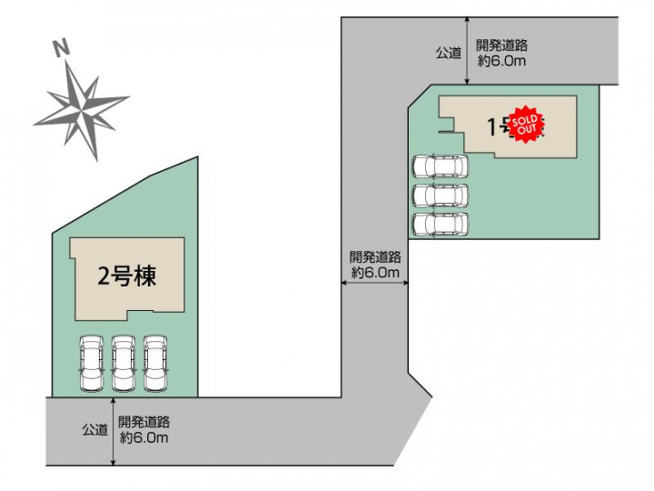 | 駐車場 | 3台 | 道路の幅員 | 開発道路6.0m公道 |