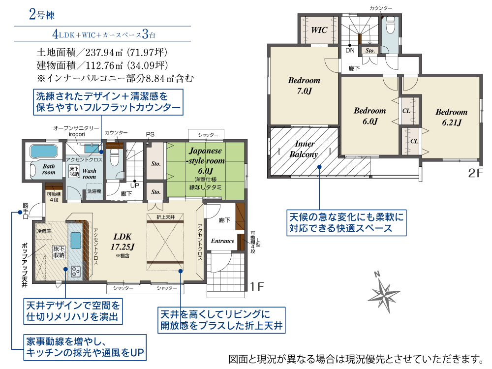 | 建物面積 | 112.76m2(約34.10坪) | 土地面積 | 237.94m2(約71.97坪) |