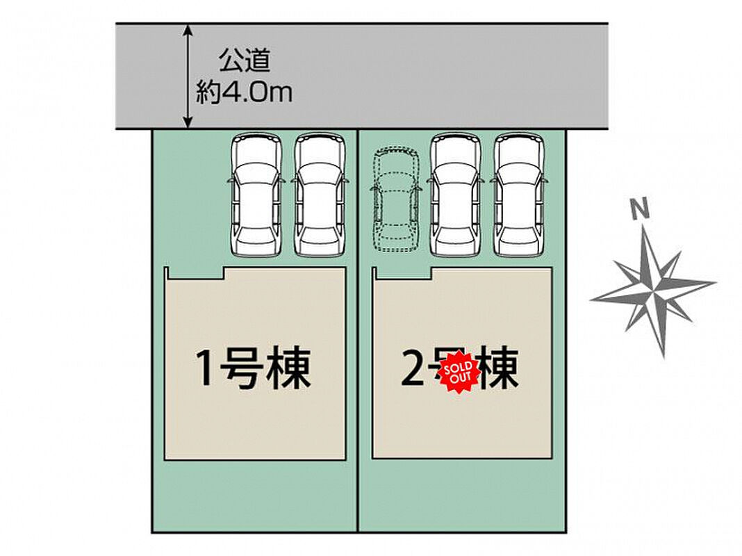 | 駐車場 | 2台 | 道路の幅員 | 北4.0m公道 |