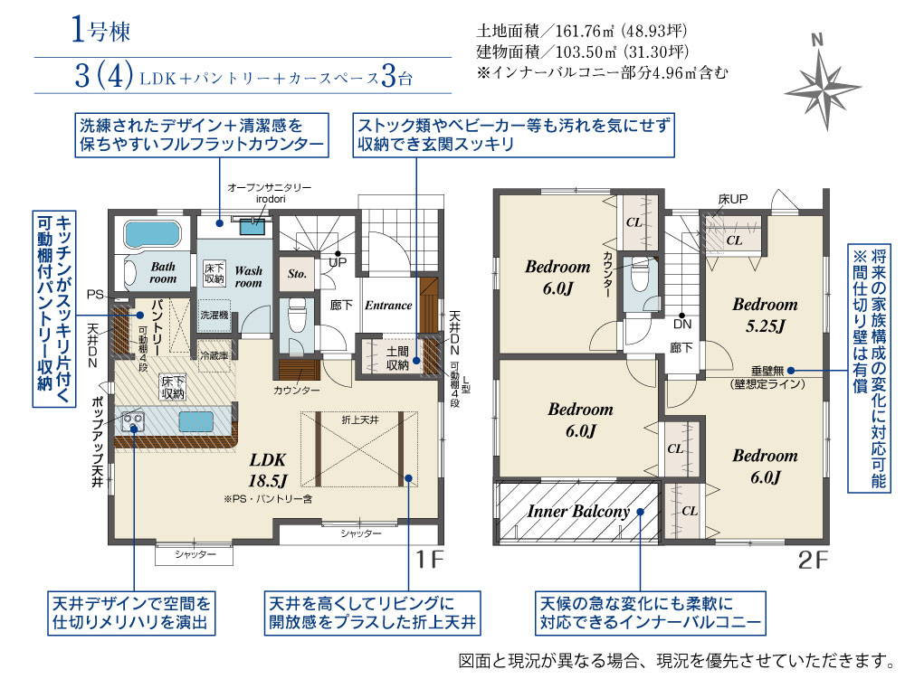 | 建物面積 | 98.54m2(約29.80坪)~103.50m2(約31.30坪) | 土地面積 | 161.76m2(約48.93坪) |
